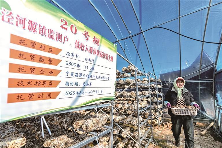 12月4日,涇源縣涇河源鎮(zhèn)冶家村珍稀食用菌園區(qū)里,務(wù)工人員忙著采摘、分揀香菇,并將其運往新投用的保鮮庫,源源不斷供應(yīng)全國市場,部分產(chǎn)品還通過冷鏈銷往東南亞地區(qū)。近年來,涇源縣立足林多地少的縣情,將菌菇產(chǎn)業(yè)作為鄉(xiāng)村振興的重要抓手,推動產(chǎn)業(yè)從引進(jìn)外地企業(yè)到本土壯大、從零散種植到集群發(fā)展,讓農(nóng)戶緊密聯(lián)結(jié)在菌菇產(chǎn)業(yè)鏈上。目前,涇源縣已上架菌棒1000余萬棒,建成11個林菌基地、18個種植示范村,43個村集體參與其中,帶動1450余戶農(nóng)戶種植菌菇。(記者 安磊 攝)