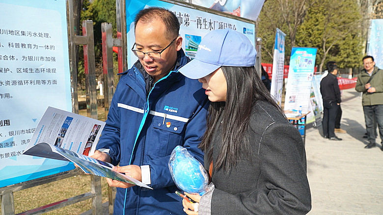 活動(dòng)現(xiàn)場,銀川市第一再生水廠圍繞污水處理與再生水回用過程,布設(shè)了圖文展板、宣傳折頁和互動(dòng)問答區(qū),重點(diǎn)向公眾介紹了“AAO+高效沉淀池+V型砂濾池”核心工藝的節(jié)能減排優(yōu)勢、再生水在市政雜用、生態(tài)補(bǔ)水等方面的應(yīng)用場景,并結(jié)合廠區(qū)綠色能源應(yīng)用與智慧水務(wù)平臺(tái)建設(shè),展示了再生水廠在低碳轉(zhuǎn)型中的實(shí)踐成效。講解員現(xiàn)場為市民答疑解惑,普及節(jié)水法律法規(guī)和日常節(jié)水常識,提升群眾對城市水務(wù)運(yùn)行的理解與支持。本次“世界水日”宣傳活動(dòng)是銀川一再落實(shí)節(jié)水優(yōu)先方針、推動(dòng)生態(tài)文明理念進(jìn)社區(qū)進(jìn)公眾的重要實(shí)踐。通過與業(yè)主單位聯(lián)動(dòng)宣傳、與專業(yè)平臺(tái)協(xié)同講解,進(jìn)一步拓寬了再生水理念傳播半徑,提升了公眾對水安全、水循環(huán)、水環(huán)境等領(lǐng)域的認(rèn)知水平。