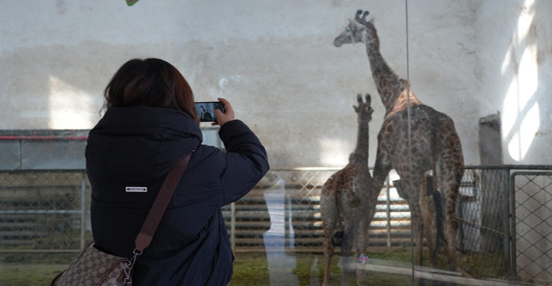 12月17日,游客在銀川中山公園動(dòng)物園長(zhǎng)頸鹿館拍照。據(jù)介紹,天氣日漸轉(zhuǎn)冷,銀川中山公園動(dòng)物園針對(duì)不同動(dòng)物的生活習(xí)性,在獸舍加裝天然氣壁掛爐、暖氣片,并在獸舍外墻面加蓋保溫棉被,確保動(dòng)物溫暖過(guò)冬。記者 祁國(guó)昌 攝