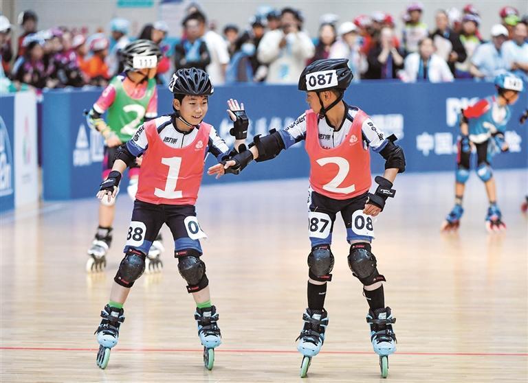 寧夏選手張文欣(左)與隊(duì)友王宇昊在比賽中擊掌接力。