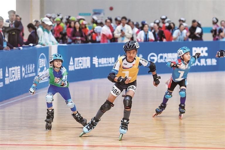 寧夏選手馬志璽參加殘?zhí)貖W男子輪滑接力賽。