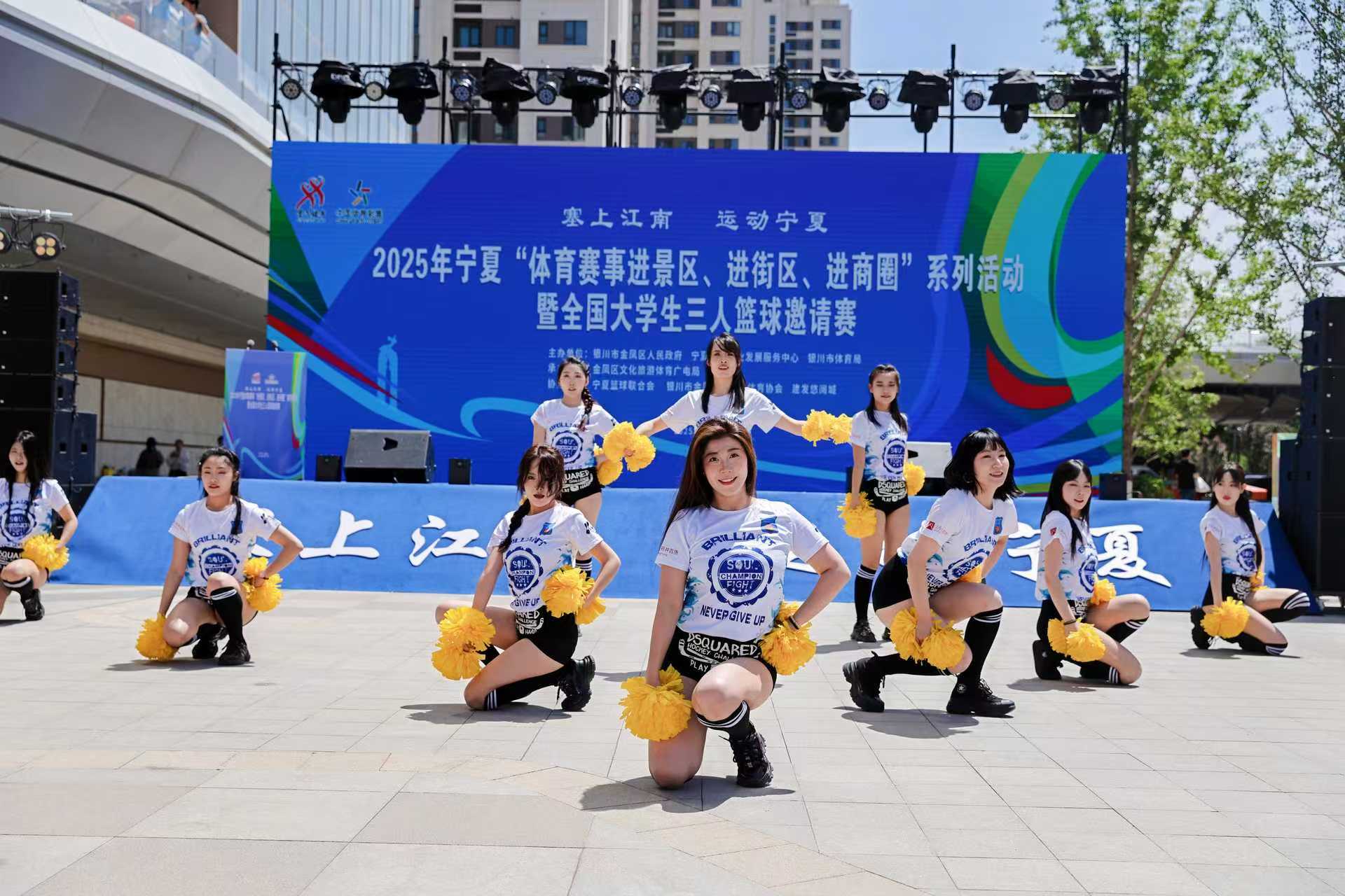 全國大學生三人籃球邀請賽啦啦隊在現(xiàn)場表演。