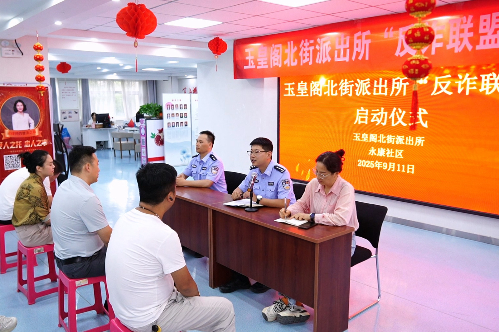 玉皇閣北街派出所里不僅有成員單位莊重表態(tài),更同步開展“沉浸式”反詐宣傳——社區(qū)民警結(jié)合“冒充客服退款”“虛假投資”案例拆解套路,銀行工作人員講解銀行卡安全技巧,運(yùn)營商代表傳授詐騙攔截方法。當(dāng)日,發(fā)放宣傳彩頁220余份,覆蓋240余人,線上聯(lián)動(dòng)60個(gè)網(wǎng)格群、行業(yè)場(chǎng)所群持續(xù)推送反詐知識(shí),讓防騙意識(shí)深入人心。