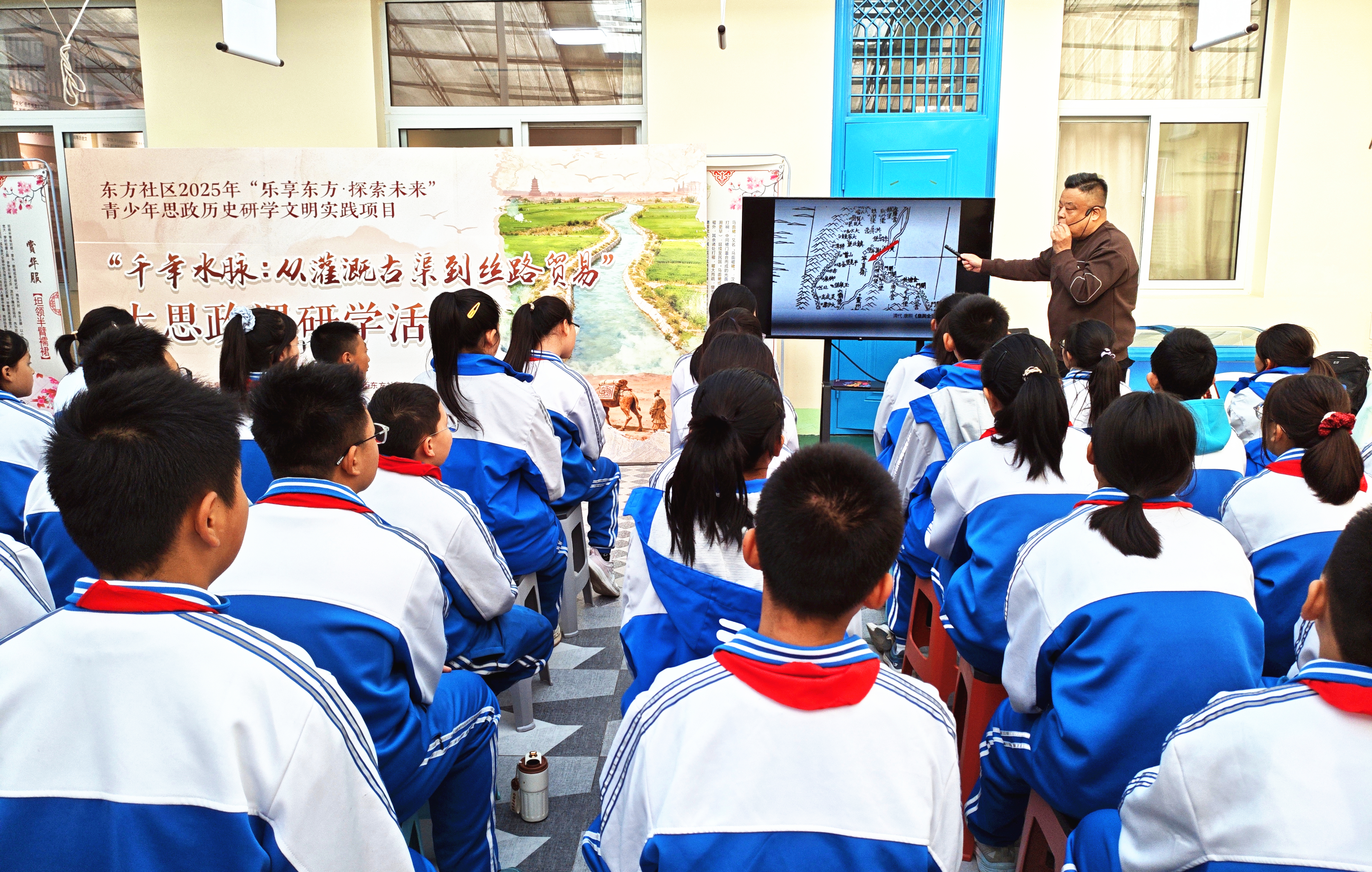 這場(chǎng)思政課充分利用了寧夏兒童生態(tài)科普?qǐng)@的獨(dú)特空間優(yōu)勢(shì),將靜態(tài)的歷史知識(shí)轉(zhuǎn)化為動(dòng)態(tài)的實(shí)踐體驗(yàn)。在研學(xué)老師生動(dòng)的講述中,秦漢先民開(kāi)鑿渠道的艱辛、“無(wú)壩引水”的古人智慧、古渠作為“水上高速公路”的貿(mào)易盛景,原本抽象的歷史知識(shí),不再是書(shū)本上枯燥的文字,而是可感可知的家鄉(xiāng)故事。