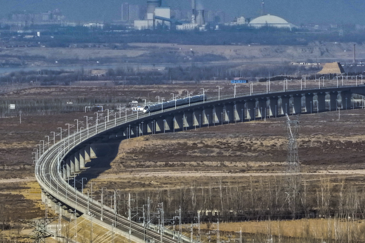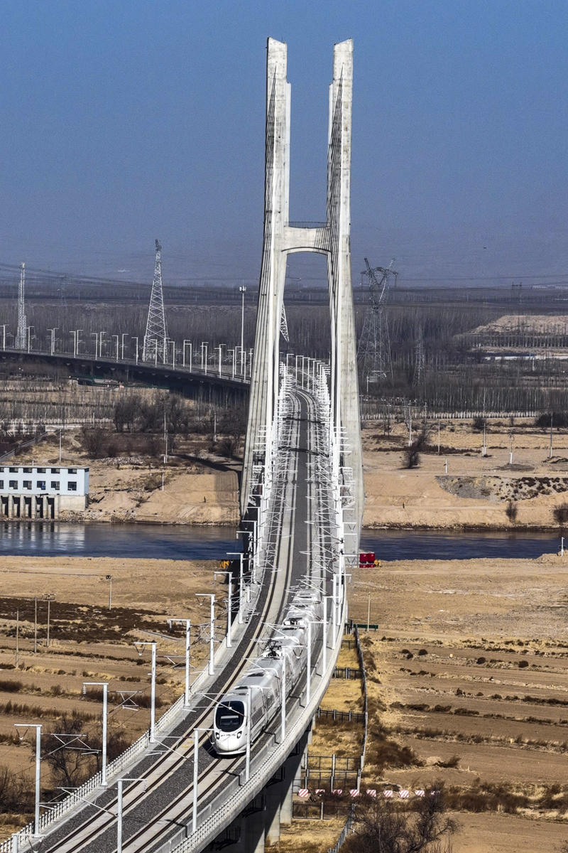 12月23日,包銀高鐵正式開通運(yùn)營(yíng)。當(dāng)日12時(shí)許,首趟列車駛過(guò)包銀高鐵烏海黃河特大橋,飛馳進(jìn)入寧夏。作為國(guó)家“八縱八橫”高鐵網(wǎng)京蘭通道的重要組成部分。包銀高鐵的全線建成將徹底打通寧夏、內(nèi)蒙古等西部省份與華北地區(qū)的快速客運(yùn)通道,將極大便利沿線人民群眾出行,對(duì)推動(dòng)黃河流域高質(zhì)量發(fā)展,助力新時(shí)代西部大開發(fā)戰(zhàn)略實(shí)施,具有十分重要的意義。 寧夏新聞網(wǎng)記者 祁瀛濤 攝
