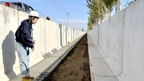 在暖泉渠施工現(xiàn)場,不見傳統(tǒng)工地支模澆筑的泥濘與忙亂,只見大型吊車將規(guī)整劃一的L型混凝土構(gòu)件輕巧地吊裝到位,工人們隨后進行精準拼接,工序流暢,現(xiàn)場整潔?!澳憧?,渠邊這些樹都不用砍伐了。”寧夏水利工程建設(shè)中心規(guī)劃計劃科工作人員鄒璇指著渠邊胸徑20厘米的楊樹介紹,這個“新神器”的應(yīng)用,實現(xiàn)了工程建設(shè)與生態(tài)保護、資源節(jié)約的協(xié)同。它通過工廠化預(yù)制,從源頭上確保了混凝土強度和外型精度,工程質(zhì)量遠勝傳統(tǒng)手工現(xiàn)澆,渠道壽命大幅提高,運行維護費用降低;構(gòu)件提前預(yù)制、現(xiàn)場拼裝,保護渠畔林木,更是將現(xiàn)場工期壓縮了約一半,極大緩解了施工組織壓力。