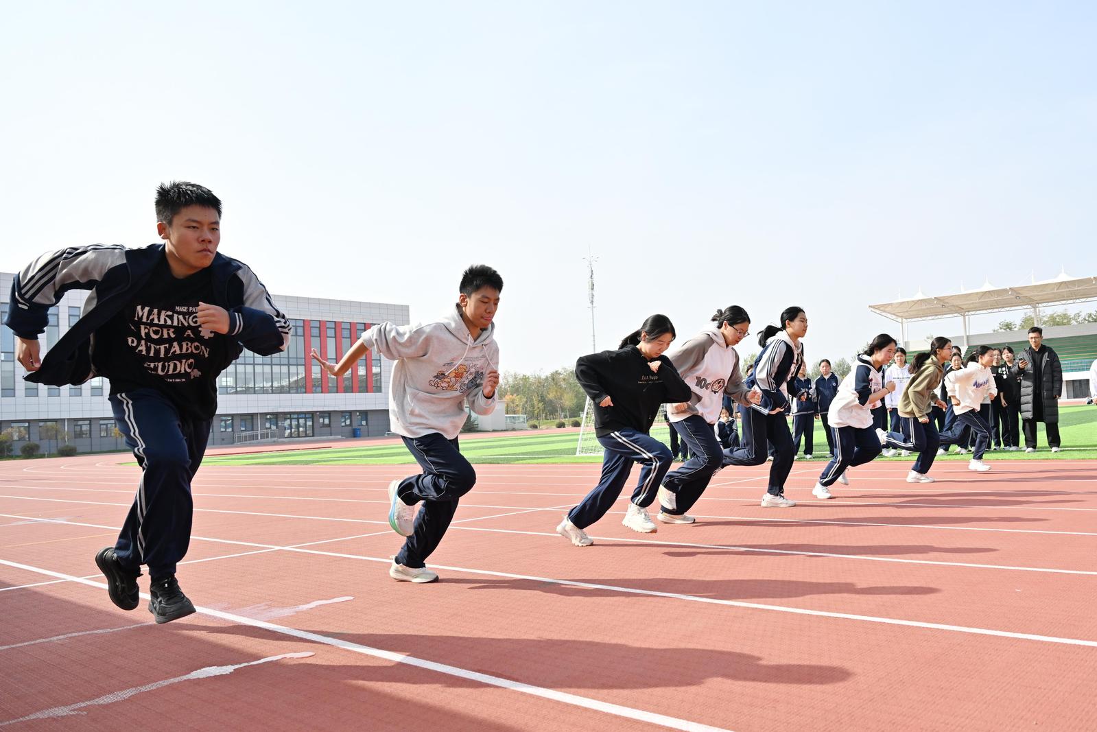 10月24日,學(xué)生在銀川市閱海灣高級中學(xué)操場上進行體育活動。